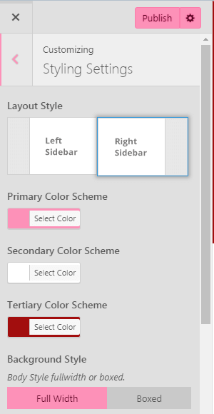 - Go to Appearance>Customize>Styling Setting